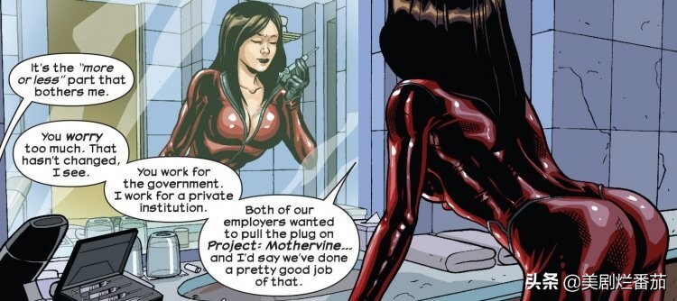 相当很多人关注的是「乱伦」这部分,这其实是终极宇宙把漫画正史世界中,「快银」对「绯红女巫」的过度保护欲,及他们这对手足相互扶持的家族爱,变得较为扭曲黑暗,并成了一段禁忌之恋,其实各位可以发现某部分故事正是靠这段感情,进而推动剧情核心。
