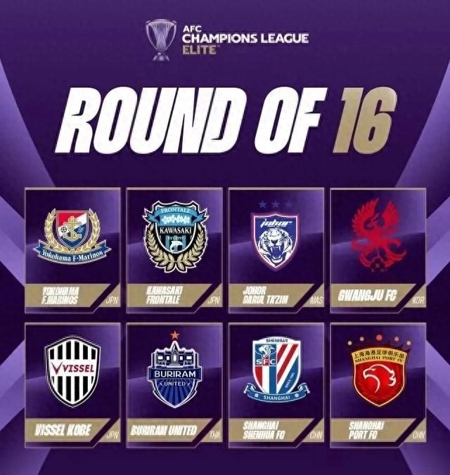 2024/25赛季亚冠精英联赛联赛阶段第八轮比赛全部结束,代表中超出战的三支球队上海申花主场4-2击败全替补出战的神户胜利船,上海海港主场0-2不敌横滨水手,亚冠精英联赛16强对阵出炉,