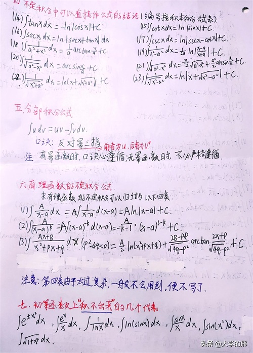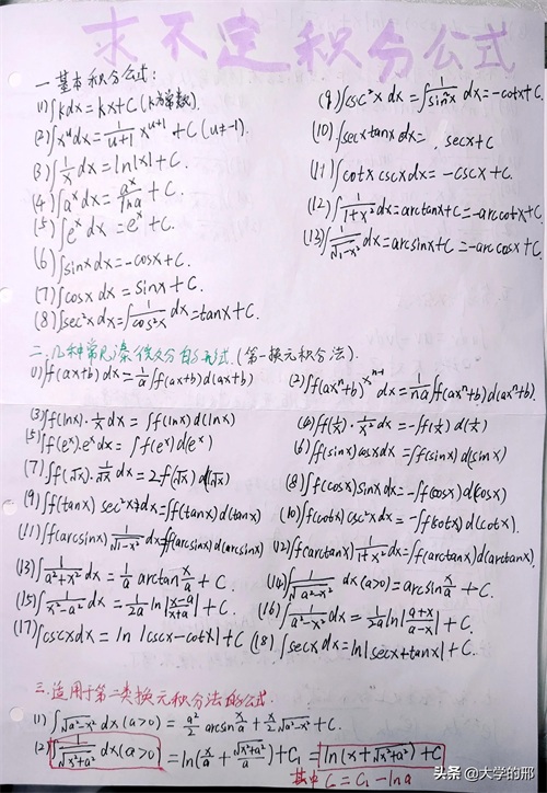 其中基本积分公式是直接积分法的前提,也是换元积分法和分部积分法的前提,必须掌握,达到倒背如流的效果