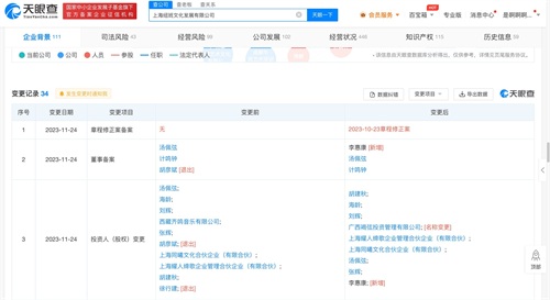 近日,记者从天眼查App获悉,上海纽班文化发展有限公司发生工商变更,胡彦斌卸任董事长,由李惠康接任。