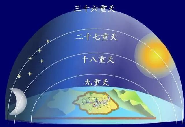 在佛教传入之前,中国只有九重天的说法,一种是根据空间方位定义四方八卦九重天,一种是根据五行九辰定义的九重天。中国人开始是没有三十三重天的说法,该说法是佛教传入中国后才有的。