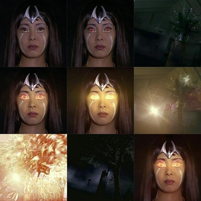 热视野:在大古梦境中使用。眼睛从周围吸收极多热量,瞳孔先受热变为红色,进而周围发出黄色的光,逐渐变得耀眼,放出光时同时放出大量热。在剧中该技能直接使玻璃震碎。