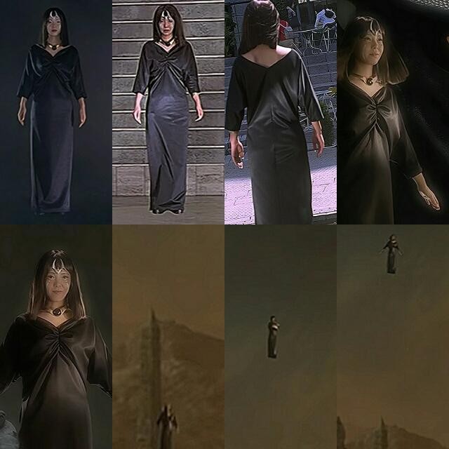 身体与普通人类无异,长头发柔顺光滑,眼睛周围是金色的,脸上涂着妖艳的彩妆,朱唇十分诱人,身着长长的黑色布裙,手指甲为金色,脚上穿着黑色的绷带高跟鞋。身材高挑妖娆,几乎是奥特曼中最漂亮的角色。