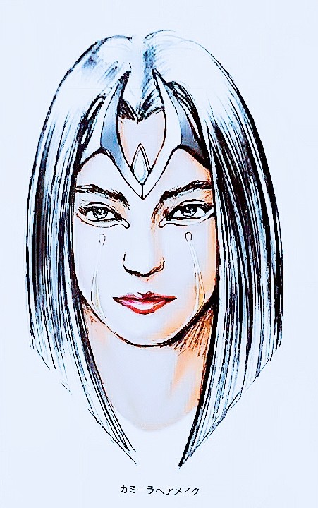 眼睛下方有一细长条银金色物质,那是卡蜜拉被迪迦背叛后,由于失去感情太过伤心而留下的泪痕。