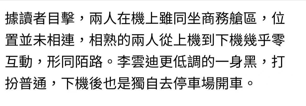目击者称,两人从上机到下机都零互动,形同陌路。
