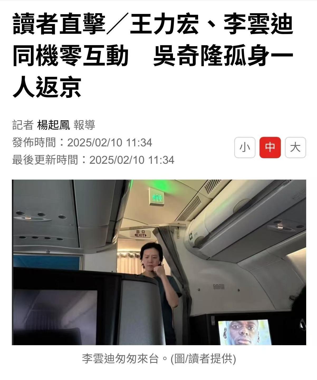 台媒报道,2月9日,从台北桃园机场飞往北京的航班上,星光熠熠。