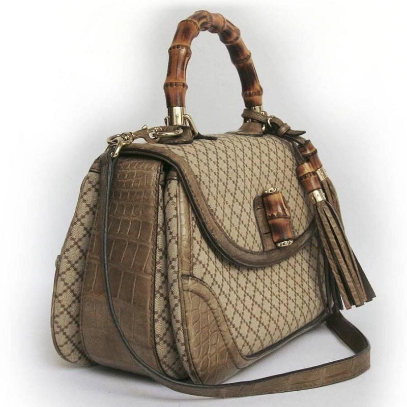 由于战争时期进口原料短缺,尤其是军用品所需的皮革,Gucci 尝试用亚麻、黄麻等特殊材料作为皮革的替代品。1935年,Gucci 用那不勒斯出产的大麻纤维制作箱包,解决了皮革稀缺的问题;1947年,Gucci 推出以竹制作手柄的手袋——竹节包(Bamboo bag),用竹子取代原本的皮质手柄,既节省皮革材料,又充满东洋异域风情,是 Gucci 至今的经典元素之一。