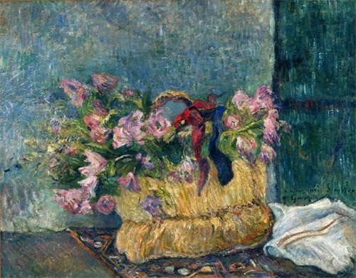 高更的作品有着丰富的装饰风格,图片中很多地方都有图案般的平涂效果,轮廓线是深色或黑色。这种画面处理在当时的画坛是独一无二的。高更结合东方文化和原始土文化,强烈反对客观模仿,注重画面色彩的装饰性、纯粹性和表现性,形成了基于模仿所有艺术风格对抗现代工业文明的新形式。