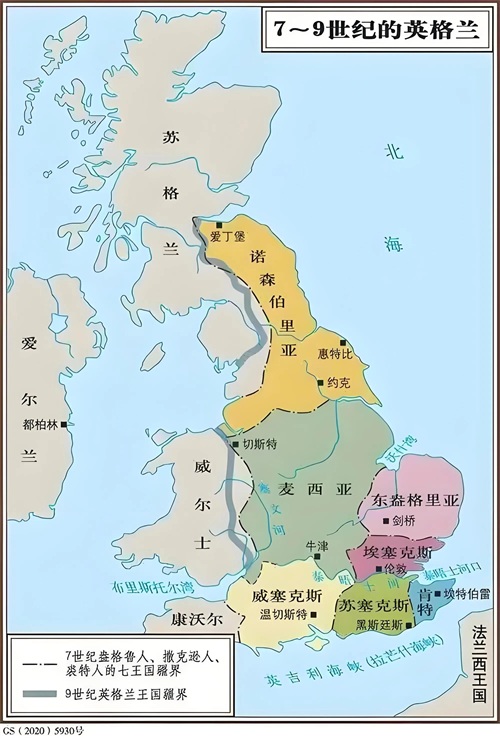 5世纪,随着罗马帝国的衰落,罗马军团撤离不列颠岛,导致岛上出现权力真空。盎格鲁人(Angles)、撒克逊人(Saxons)和朱特人(Jutes)等日耳曼部落趁机入侵并定居,逐渐形成了多个小王国。随着时间推移,这些小王国通过战争和联盟不断整合,最终形成了七个主要王国。也就是 韦塞克斯(Wessex),东盎格利亚(East Anglia), 肯特(Kent), 梅西亚(Mercia), 诺森布里亚(Northumbria),苏塞克斯(Sussex), 伊斯特安格利亚(Essex)。这就是英国历史上的七国时代。829年,韦塞克斯国王爱格伯特(Egbert)统一了其他王国,奠定了英格兰统一的基础。基督教在这一时期逐渐传播开来,成为各王国的重要宗教力量。盎格鲁-撒克逊社会逐渐从部落联盟向封建制度过渡,贵族阶层逐渐形成,国王将土地分封给贵族(如伯爵、主教等),贵族则向国王效忠并提供军事支持。