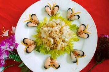 主料:虾仁、海螺肉