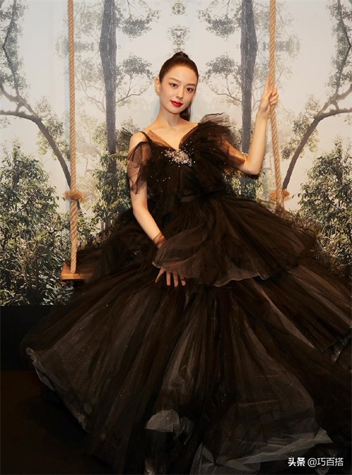 层层叠叠的裙摆上点缀了亮片设计,仿佛天空上的星星,一闪一闪得十分耀眼,在媒体的镁光灯下更是熠熠生辉。轻盈的面料与层叠剪裁更是相得益彰,既有仙女气质的飘飘然,又有戴安娜王妃般的优雅范儿。