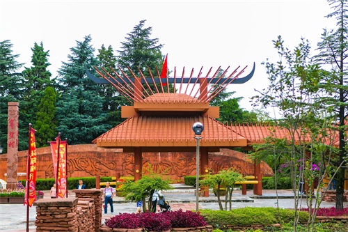 来到彝族村,这里的三虎浮雕墙和虎山造型非常具有彝族虎文化的特色,太阳历广场中央的图腾,还有围绕在4周的生肖石雕,依山而建的土掌房建筑,斗牛场,茶山园都淋漓尽致的体现了彝族的文化特色