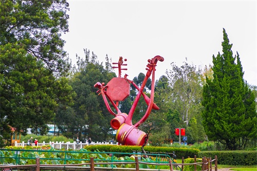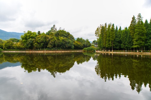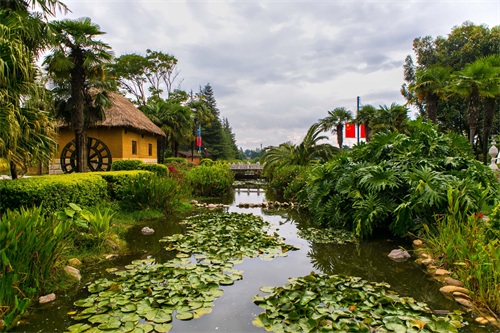虽然这里占地有1200多亩,但是水域的占地面积要达将近500亩,因此这里十分的错落有致,清新优雅,其中不缺乏绿荫小径,亭台回廊等各具民族特色的建筑风格。