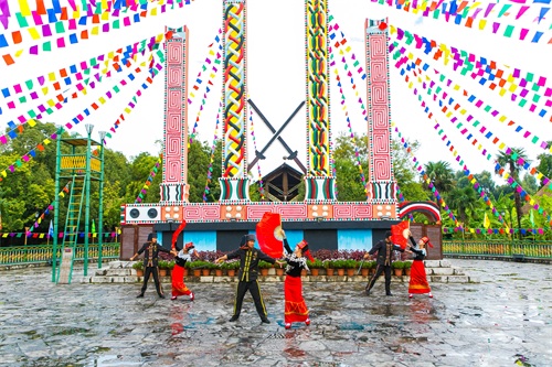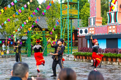 昆明滇池之畔有个民族村,占地1000亩,水陆交错、清新优雅