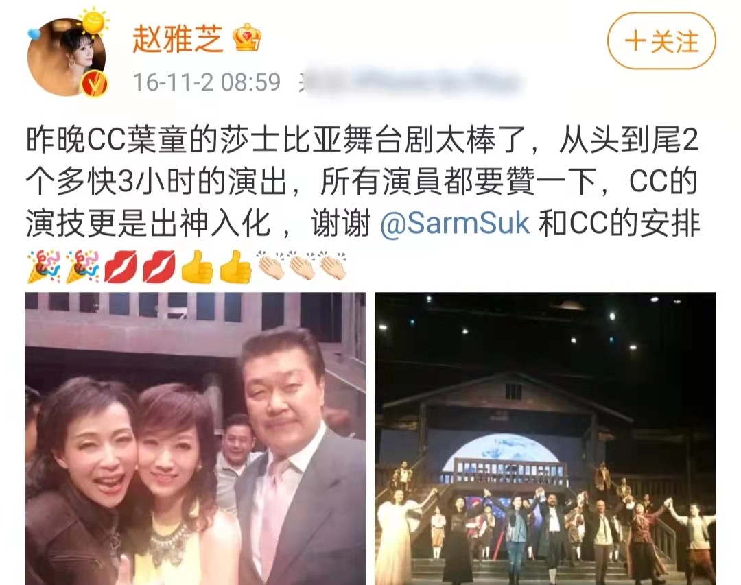 叶童出演舞台剧时,赵雅芝带着丈夫去捧场,还亲自发动态为叶童的作品宣传。