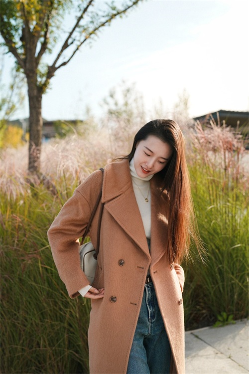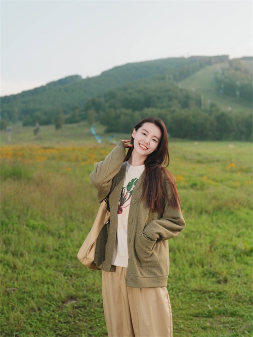 一个人在外拍照,可以轻轻垂下头,露出一个柔和的微笑,目光不需要直视镜头。这种低头的姿势显得既害羞又温柔,特别适合展现柔和的女性气质。可以在户外光线较为柔和的环境中尝试,增加照片的温馨感。