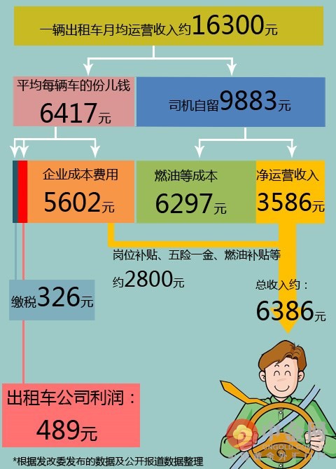 但无论如何收取,份子钱总体来说都是出租车企业在计算好成本,并加入利润空间后核算出的纯收入。因此,收取“份子钱”成为企业排除风险、确保赚钱的“超稳定”经营模式。记者从北京市一份对份子钱“去向”的调查统计中看到,2013年被调查的出租车司机中,平均每人每月交给出租车公司6200元份子钱,其中有5279元用于承担出租车企业的运营成本。