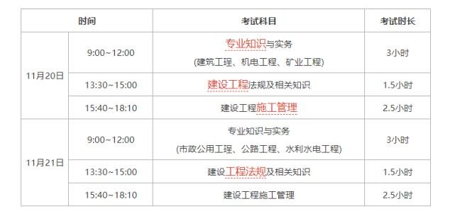 2021一建考试时间时长