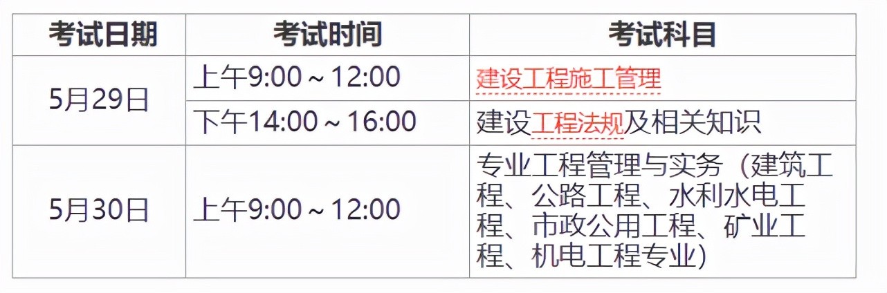 二建考试3科:实务(120分),法规(100分),管理(120分)