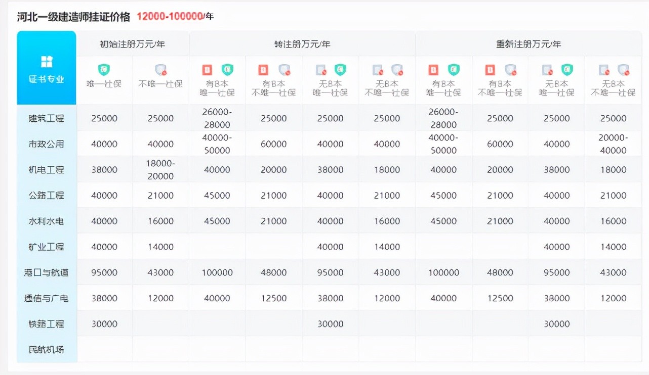 一建河北的价格在1.2-10万左右(个别专业价值较高)