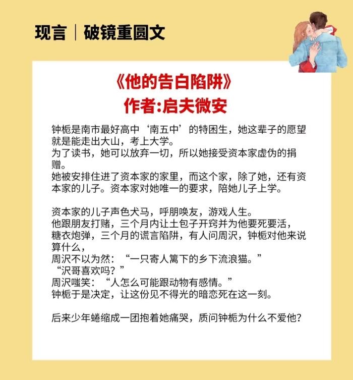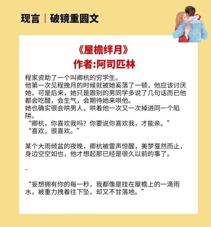 以上就是4本破镜重圆文的全部内容,喜欢这个类型的小仙女记得点赞和收藏啦,咱们下期再见喽~