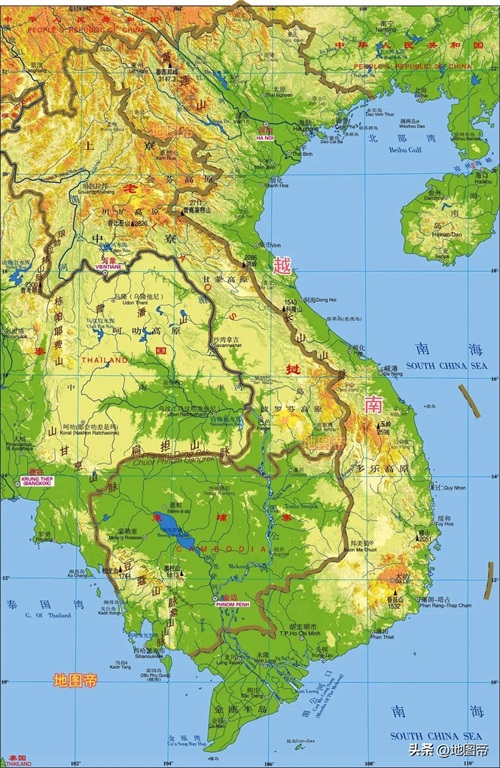 越南,位于中国以南,按顺时针方向,北方是中国的云南省和广西壮族自治区,东方是中国南海,西南与柬埔寨相连,西部隔着长山山脉与老挝相接。越南面积约32.96万平方千米,放在我国省级行政区中可排第九位。越南人口约9847万(2022年),京族占86%,岱依族、傣族、芒族、华人、侬族人口均超过50万。