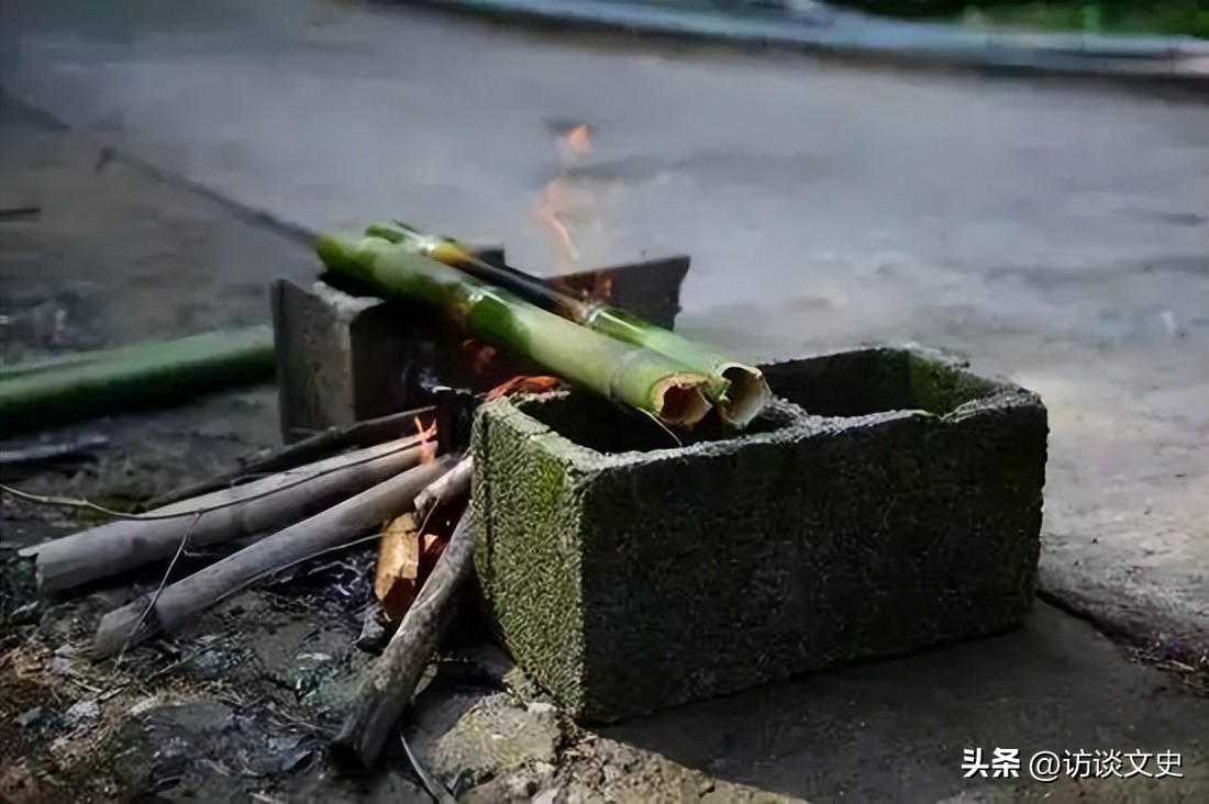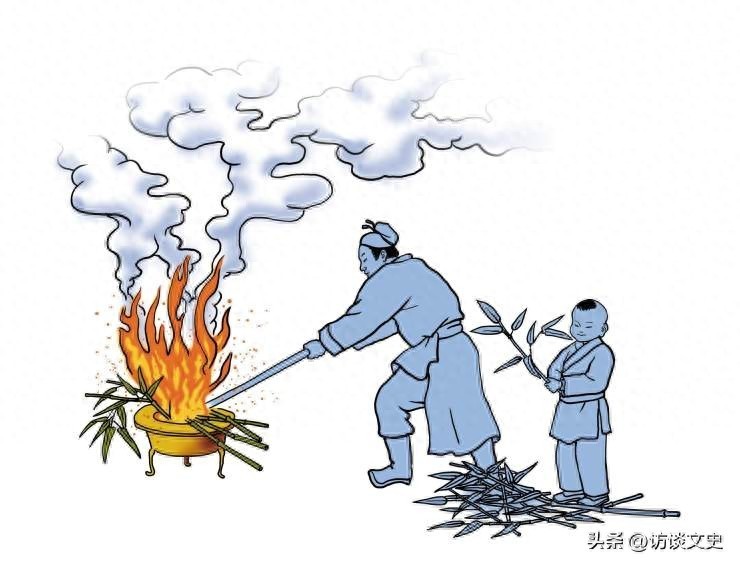 首先是截筒五尺煨以薪,这是什么意思?说的是把竹子截成五尺长(一米出头点)的样子,然后投入火堆之中。古人有一副画,很形象展现了这个样子