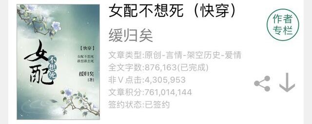 3.《女配不想死》作者:缓归矣