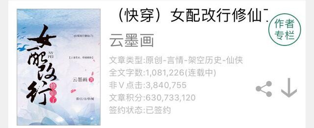4.《女配改行修仙了》作者:云墨画