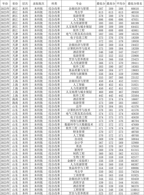 三、北京联合大学2023年在3+1+2高考省份各专业录取分数线