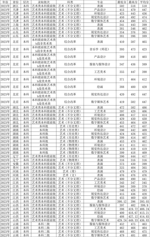 五、北京联合大学2023年艺术类在各省各专业录取分数线