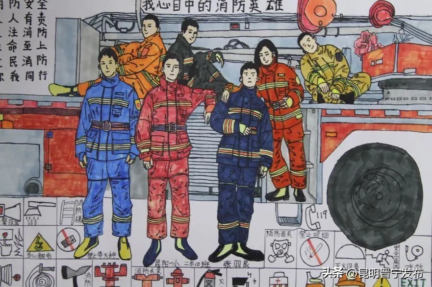 晋宁区消防救援大队专职消防员邹超介绍说:“我们每年都会联合区教体局组织开展中小学生消防绘画,让孩子们从小感受消防文化,从图画角度展现他们对消防的认识,描绘他们心中的消防,让消防安全的重要性扎根在孩子们心里。”
