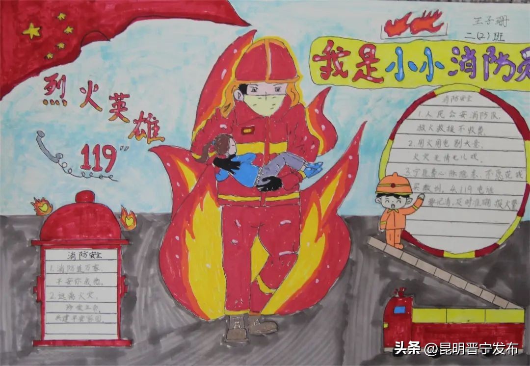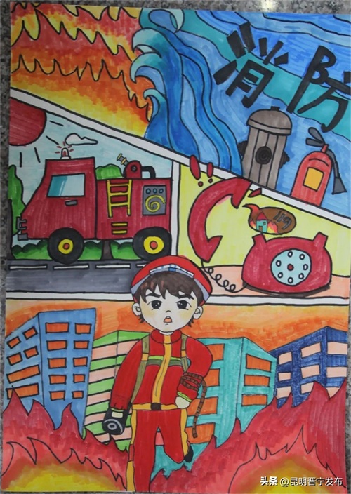 日前,晋宁区消防救援大队和晋宁区教育体育局联合举办的全区中小学生消防绘画大赛决出名次。孩子们笔下的“火焰蓝”,美好又温暖。