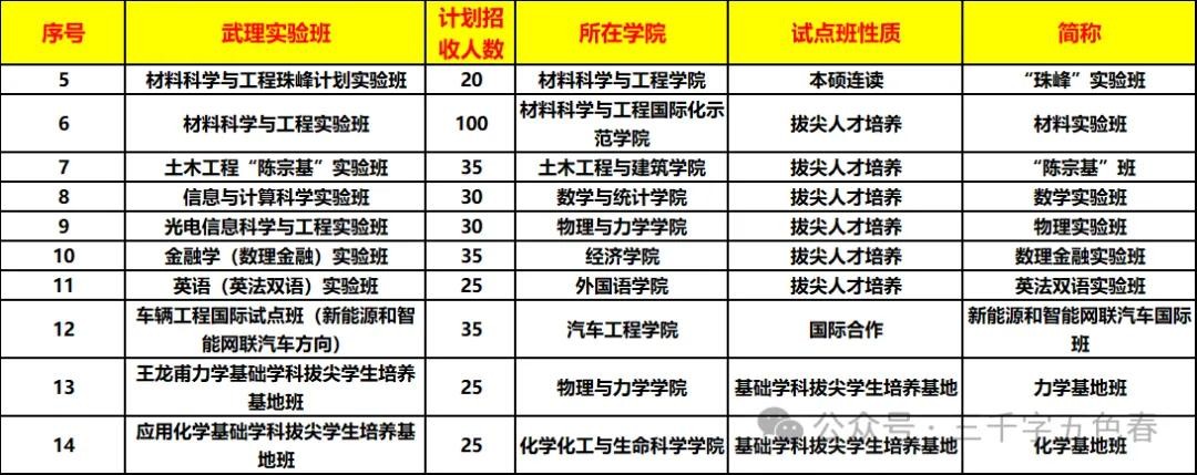 武汉理工大学2024年入校各类实验(试点)班选拔