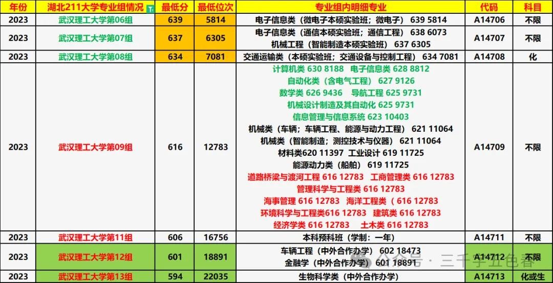 湖北省2023年招生专业组数据: