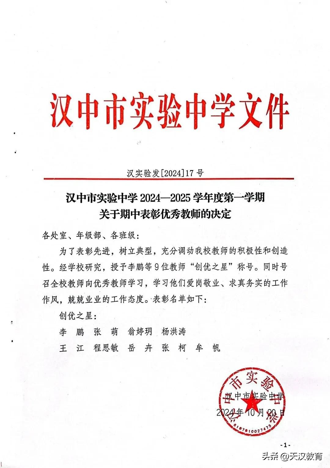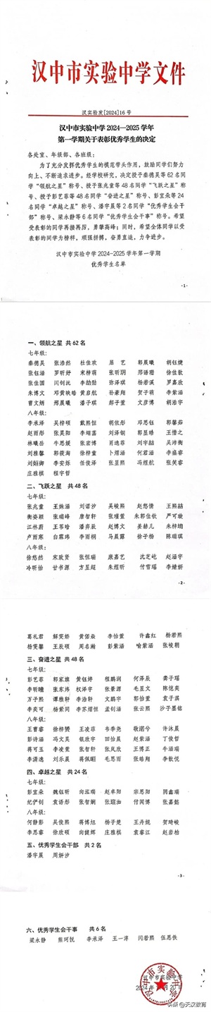 汉中市实验中学2024—2025学年度第一学期期中表彰大会
