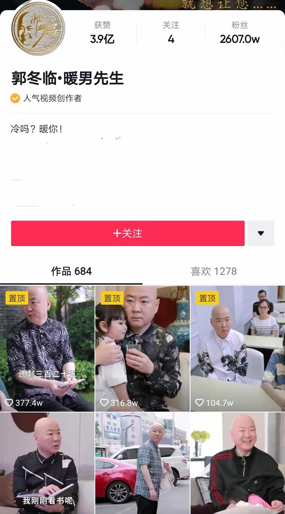 目前,郭冬临在抖音等平台上的粉丝数已经突破2600万,有时甚至超过了当红网红"带货王"李佳琦。从努力探索出一条网络新路,到最终反季重塑人气巨星,郭冬临向所有粉丝们诠释了什么才是顽强拼搏、自我救赎的精神力量。