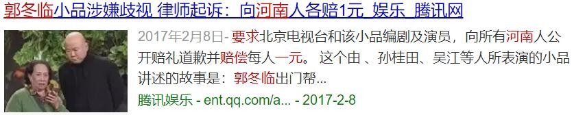 2017年,郭冬临在北京卫视的春晚上演出了一个名为《取钱》的小品。其中有一句"十个河南人九个是骗子"的台词,竟然引发了河南人的强烈不满,称此发言存在地域歧视和污蔑全省人民的嫌疑。