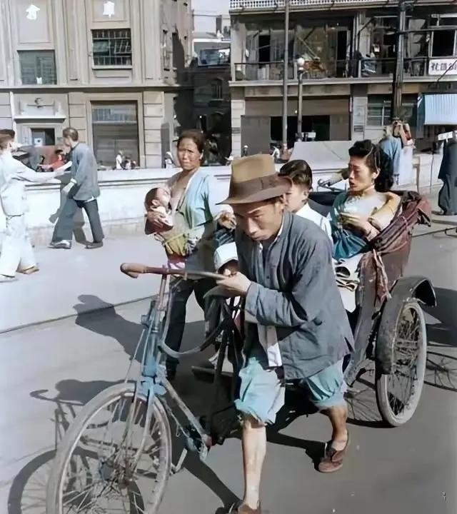 早在 1903 年,汉口路运货还用那种老式的独轮车呢,你们想想,那轮子窄窄的,推着又沉又重的货物,工人得费多大的劲啊!到了 1947 年,黄包车夫在大街上拉着车,累得够呛,大太阳晒着,汗珠“吧嗒吧嗒”地直往下掉,跑得气喘吁吁的,就为了挣几个能糊口的钱。他们那背影,看着就让人知道生活有多不容易。