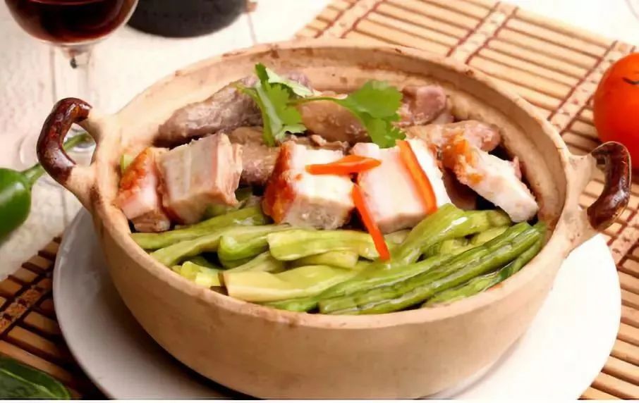 说起大圩的美食,很多人对黑皮蔗赞不绝口,不过大圩最具特色的菜品还是酸芋苗,以及由酸芋苗为原料做出来的菜品——五花肉芋苗煲。
