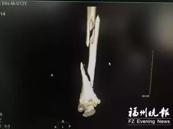 结果造成小虎的手臂有两处:螺旋形骨折、右桡神经损伤,右上臂肱骨被绞,造成了三段的骨折。