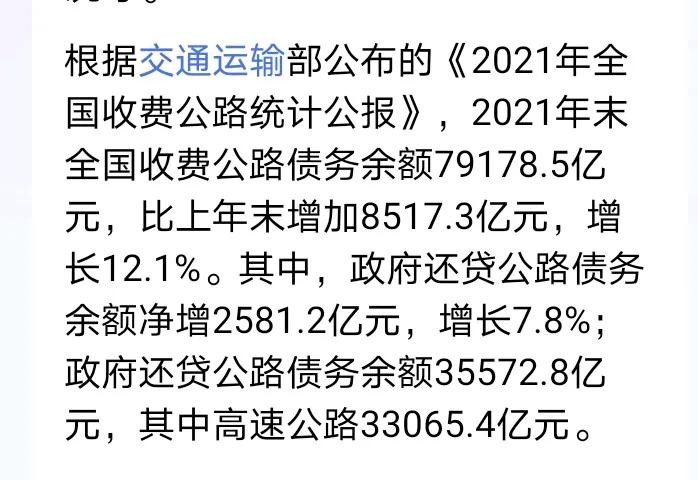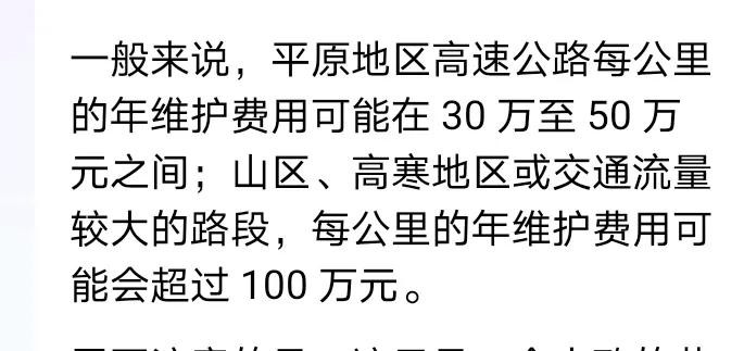 这个数据很有意思,高速公路每年收费5000亿,维护费用每公里50万,每年需要1000亿。还贷款3500亿