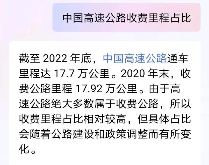 中国高速公路收费里程占比几乎是100%