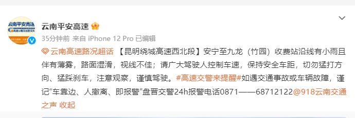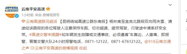 云南平安高速今早连发多条提示