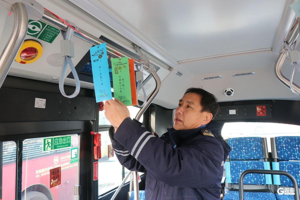 青岛日报社/观海新闻1月26日讯 春节临近,岛城大街小巷陆续挂满了灯笼,公交车内也变得年味十足。