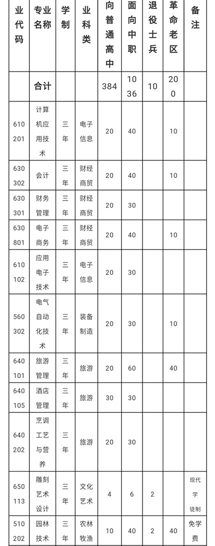 学院2020年分类考试拟面向普通高中招生384人,面向中职招生1036人,面向退役士兵单列计划10人,面向革命老区单列计划200人。招生专业和计划数详见下表。具体考试章程详见学院网站、招生办微信公众号等。黄山职业技术学院2020年分类考试招生计划最终以省教育厅公布为准。欢迎各位考生及家长登陆我院网站(http://www.hszy.edu.cn)查看,或加微信公众号(黄山职业技术学院招生就业办公室)获取相关最新咨询。