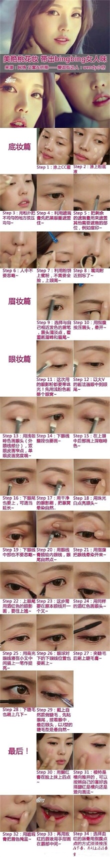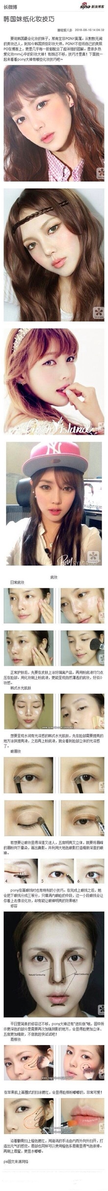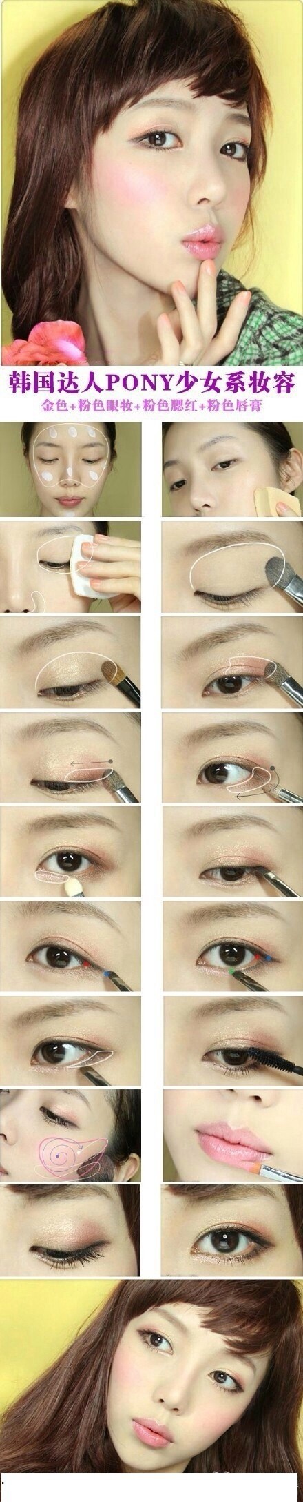化妆新手们,不知道如何下手,可以参照这张流程图,帮你解决,还有pony大神的各式妆容,喜欢的MM留着学习吧!小编很辛苦的集齐了,先来看看吧!