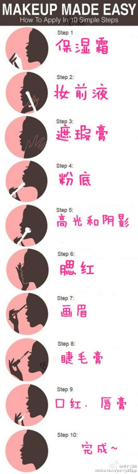 化妆新手们,不知道如何下手,可以参照这张流程图,超赞!