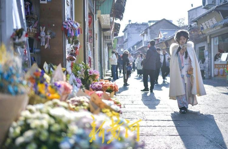 1月12日,随着寒假的到来,泉城假期游开始升温,在老城区的网红小吃街芙蓉街,街巷内熙熙攘攘,众多游客边走边品尝美食。