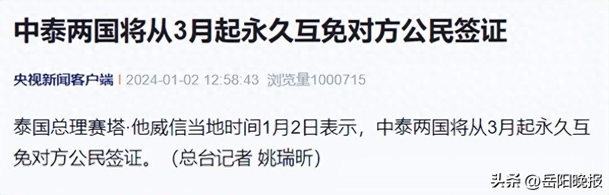 据央视新闻消息,泰国总理赛塔·他威信当地时间1月2日表示,中泰两国将从3月起永久互免对方公民签证。